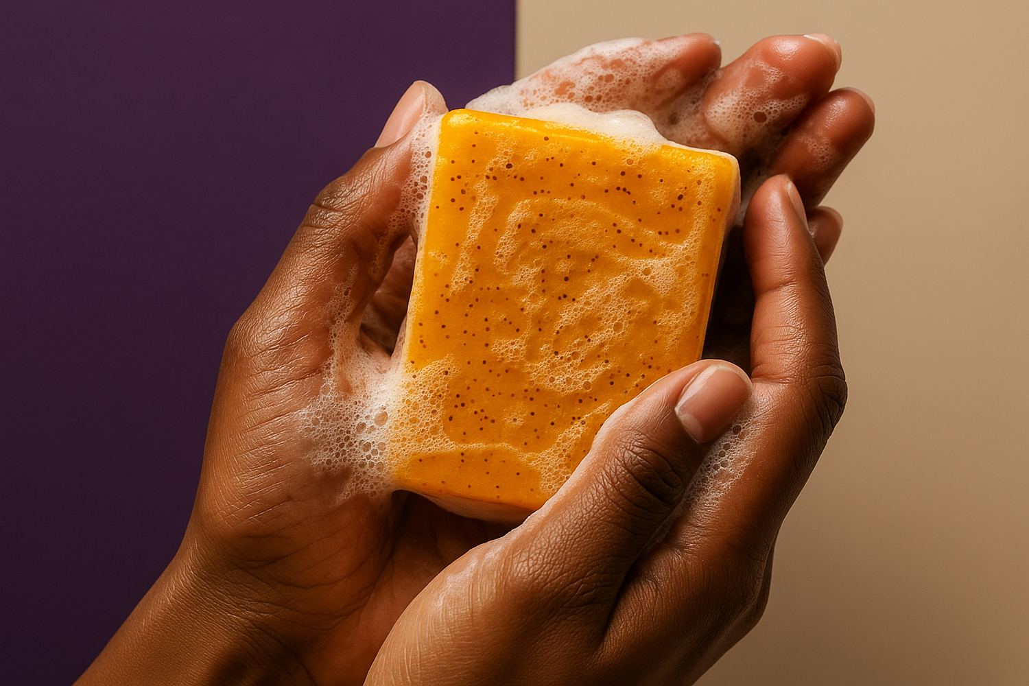 Our Turmeric & Kojic Acid Soap is a powerful 4-in-1 formula designed to: